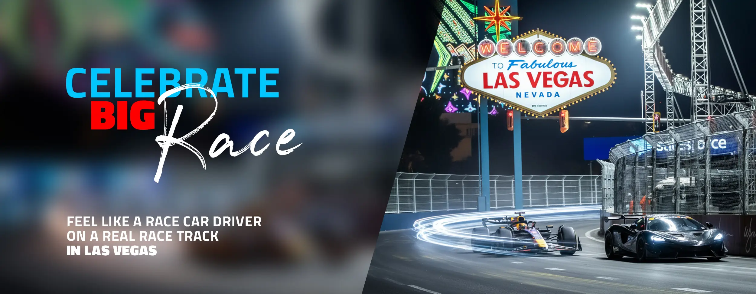 From fan to fast. Step off the Strip and into the driver’s seat with the Big Race Experience, a multi-car package built for the excitement of Race Week in Las Vegas. Take control of four track-developed machines from motorsport’s most renowned names: McLaren, Aston Martin Vantage, Ferrari, and Mercedes-AMG, each engineered for uncompromising performance.
